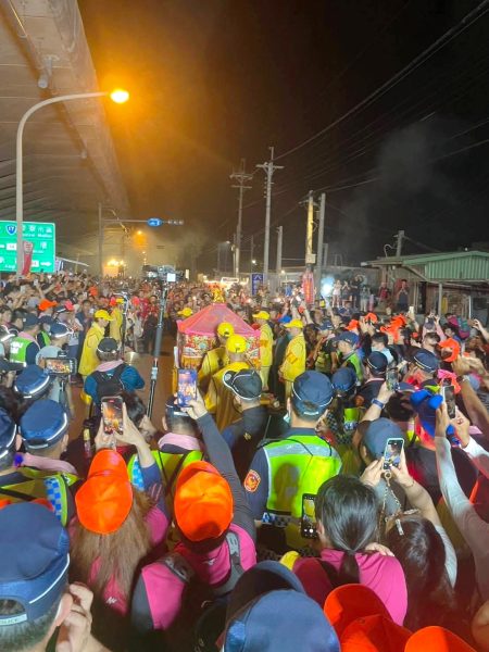 苗栗縣白沙屯拱天宮媽祖徒步前往雲林北港朝天宮進香民俗活動,「粉紅超跑」於5月1日23點25分登轎後,隨即於2日凌晨出發。「粉紅超跑」於5月3日2時15分進入臺西分局轄區,在7時35分進入元長鄉由虎尾分局接續執行安維勤務,這次徒步行走30公里,服勤同仁雖然汗流浹背,但分局同仁抱持歡喜心為民眾服務不喊累。