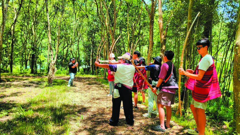 南江休閒農業區發展協會理事長陳黃光達提到,休區致力推動各項食農教育與農村體驗遊程,傳遞在地農林漁三業三工慢生活的節奏。這次透過農村再生活化的基地,過去為段木香菇產業栽培的杜英林,巧手改造後轉型為林下部落及食農教育體驗區。遊客可在導覽老師帶領下,感受自然芬多精,同時學習野菜辨識、箭術體驗、認識傳統引水設施等原民文化知識,入夜還可於南江S-PUB享受音樂及風味餐食,白天夜晚都好玩。