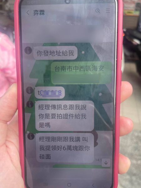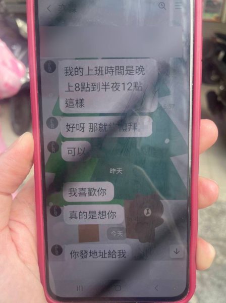 46歲的邱姓女子在網路交友軟體,認識了Line暱稱「奕霖」在酒店兼職公關的男網友,昨(4)日下午雙方相約碰面吃飯,男公關聲稱見面得先繳付新臺幣6萬元當做保證金,誆稱酒店經理是混黑的,邱女擔心如不匯款支付見面保證金,恐對其不利,急忙到永華路超商ATM自動櫃員機匯款,所幸超商店員察覺有異,通報南警二分局中正派出所員警及時到場攔阻說明,揭穿了這一場騙局。