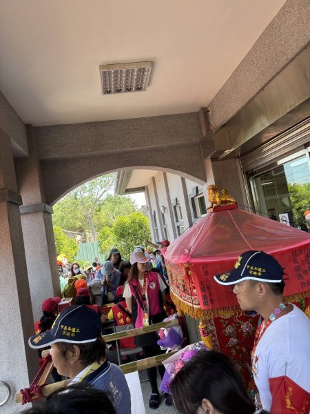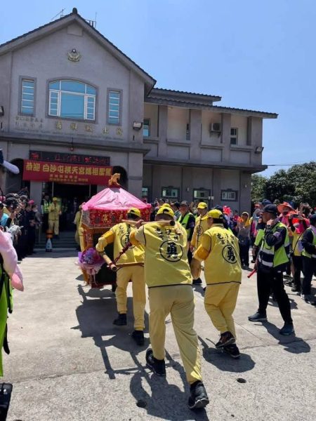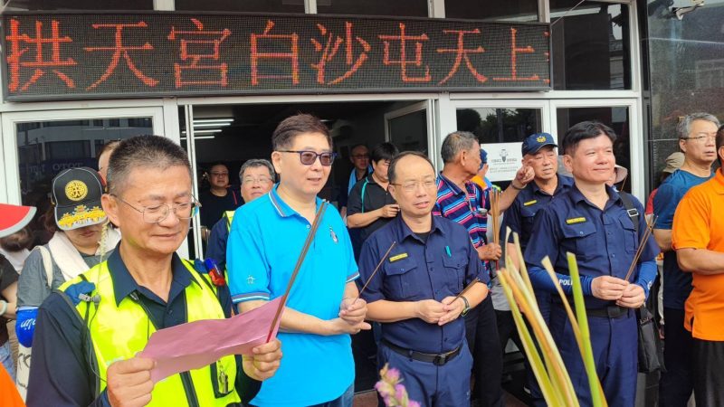 白沙屯媽祖鑾轎行經溝垻派出所時,特別選定於所內駐駕休息,分局長張澤銘率同仁把握契機,於所前誠心祈求執勤平安、轄區祥和、民眾安居樂業。