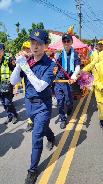 鑾轎隊伍行經重要路段時,分局長更應民俗邀請,率領兩位副分局長、組長、所長等幹部輪流參與扛轎,為地方治安、交通及員警健康祈福,現場民眾看到警察等幹部誠心參與扛轎活動,紛紛笑稱:「這是最強維安轎班組!」。
