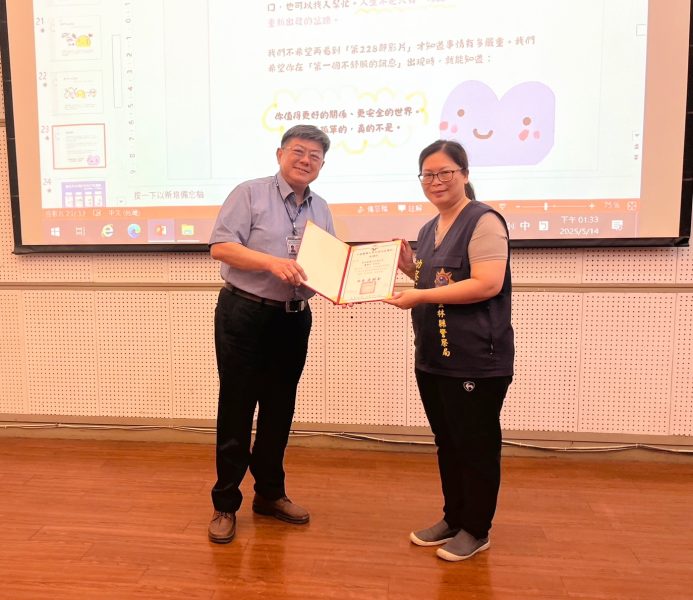 中國醫藥大學北港附設醫院對北港警分局推動性平教育表示高度肯定,並特別致贈感謝狀,感謝警方進入醫療場域協助建立正向安全環境。