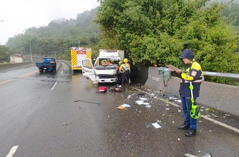 雲林縣警察局斗六分局於114年5月29日13時30分許接獲報案,在林內鄉台三線北林內陸橋發生一起自撞車禍事故,警方獲報立即派員前往現場處理。經瞭解,張姓男子(89年次)駕駛自小客貨車,沿台三線直行往斗六方向,行經事故地點,因天雨路滑不慎失控自撞橋墩,張姓駕駛身體多處擦挫傷送醫治療,經實施酒測,酒測值為零無酒駕情形,全案現由斗六分局林內分駐所專責處理,釐清肇事責任。