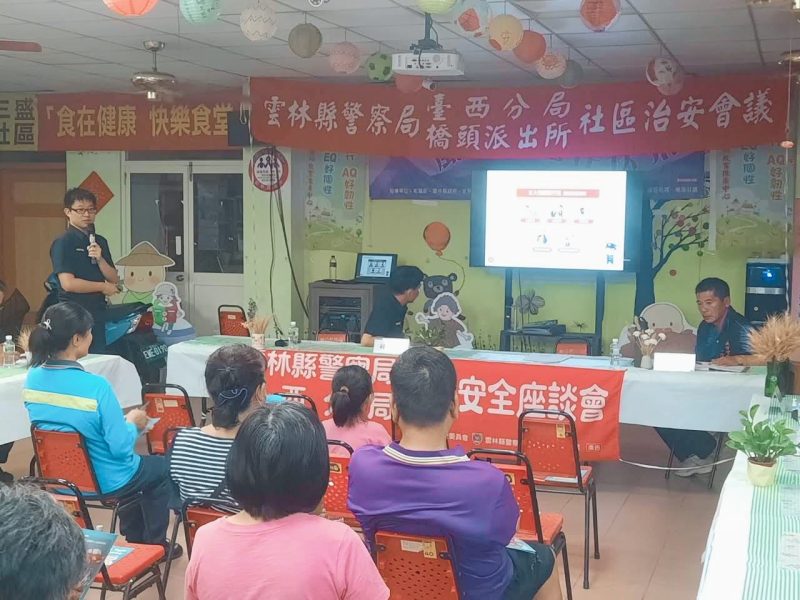 為強化民眾治安意識及提升社區自我防衛能力,雲林縣警察局臺西分局橋頭派出所近日於麥寮鄉三盛社區活動中心舉辦「社區治安座談會」,吸引30餘位社區居民熱情參與。座談會由所長林鈺家親自主持,並偕同分局相關業務單位人員出席,針對反詐騙、婦幼安全、交通安全及防空疏散避難等議題進行宣導。