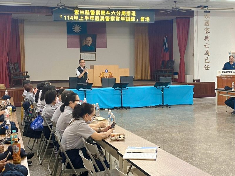 雲林縣警察局斗六分局於6月2日舉辦114年上半年義警中隊常年訓練,此次訓練課程包含全民國防、全社會防衛韌性作戰之全民防衛動員準備工作,進行協勤要領及注意事項的說明,以期勤務順利執行。