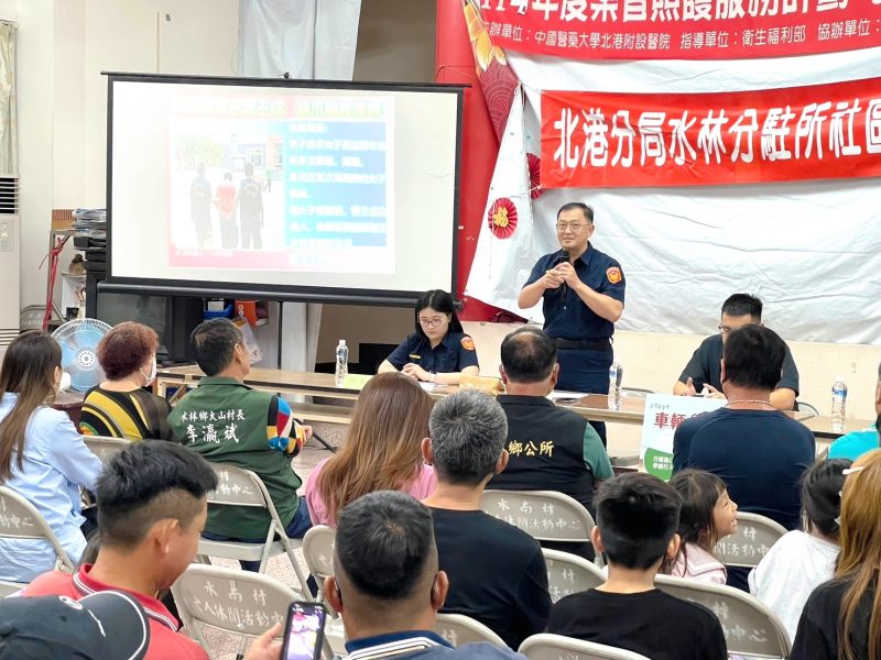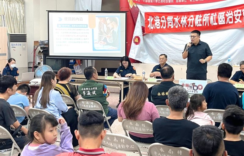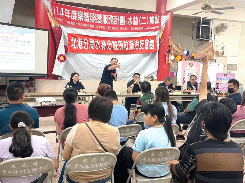 雲林縣警察局北港分局水林分駐所於6月3日晚間7時30分,在水林鄉水南村活動中心舉辦社區治安會議,由所長鄭宜慈主持。會議邀請水林鄉鄉長張東凱、尖山村村長楊政勳、萬興村村長余重山、大山村村長李瀛斌、水北村村長洪茂仁及水南村村長陳松安等地方領袖共同出席。