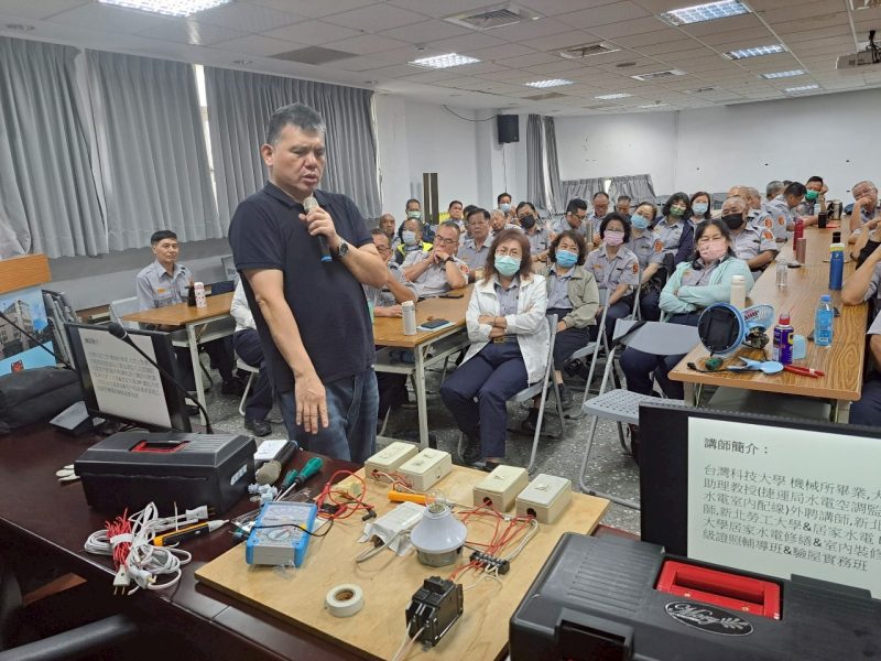 在警察局訓練課程安排內容有全國首創水電教學、汽車修護教學及規劃緊急救護(EMT1介紹)等,授課內容豐富多元,並邀請學有專精之專業講師授課,透過此次訓練,以期提昇民防、義警幹部協勤知能,統一觀念作法,培養工作默契並強化民防及治安能量。