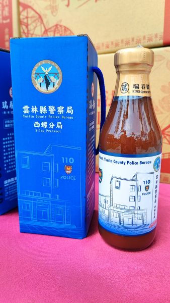 瑞春醬油董事長林淑媛在致詞中表示,西螺分局致力於地方交通、治安及為民服務,好表現有目共睹,這次藉由將新建分局外觀融入包裝設計、特製限量紀念醬油捐贈予分局,希望表達對警方辛勞的感謝與敬意,也盼透過在地企業力量,為社會注入更多正向能量。
