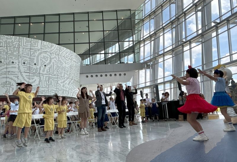 故宮南院親子藝術月今年以「浮世藝想曲」為主題,於今(27)日上午由黃永泰副院長和「咖哩玩劇團」一同揭開序幕。現場小朋友在劇團的帶動跳下,開心手舞足蹈,迎接暑假的來臨。黃永泰副院長表示,歷年來,南院的親子藝術月都規劃豐富有趣的活動,讓大小朋友在博物館裡邊玩邊學,從2019年開始,好多家庭變成南院的粉絲,不約而同於夏日回訪;黃永泰說,親子藝術月是可以從早玩到晚、從館內到園區,日夜都精彩的活動。從白天館內的實境解謎、親子手作、集章遊戲、樂器探索、兒童劇場、江戶電影院等,到夜晚戶外水舞燈光秀與無人機展演,是暑假不容錯過的盛會。