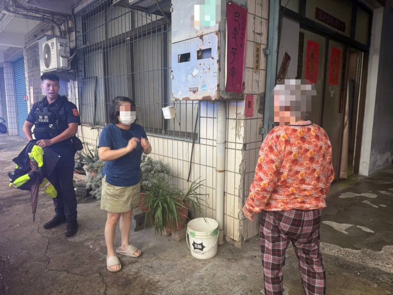 臺南市政府警察局永康分局鹽行派出所所警員陳泓均、陳沛臻擔服114年6月29日16時至18時巡邏勤務,於16時56分許接獲民眾報案稱於永康區中正南路358號路邊有迷途老人。陳等2員前往現場查看發現一名婦人茫然失措呆立於路旁,經查證老婦身分得知陳王婦人今年已高齡82歲,中午飯後獨自步行出門散步,沒預料到下午會下雨身上未攜帶雨具,突然間下起滂沱大雨讓其寸步難行無法自行步行返家 。