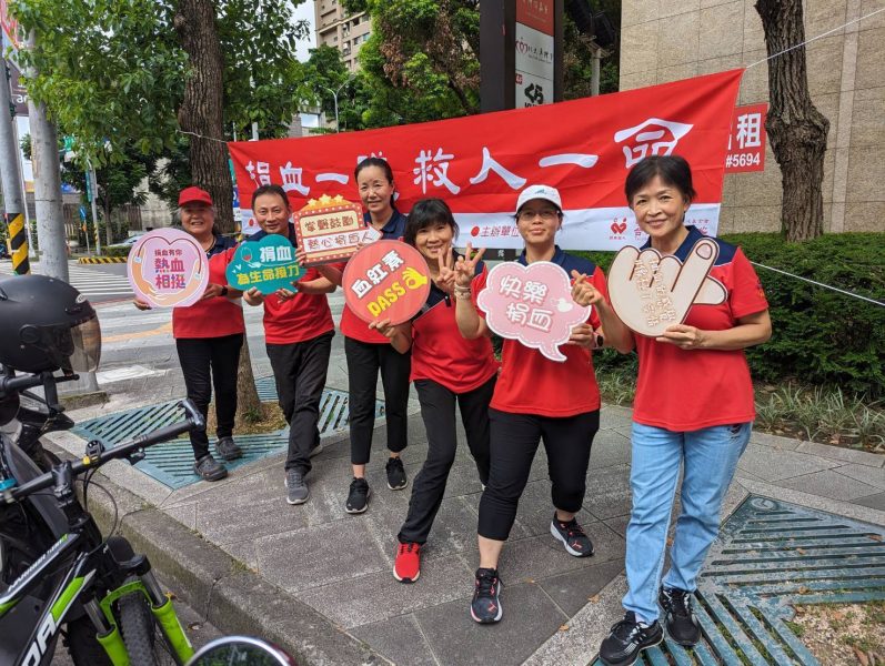 在這麼熱的天氣,義工朋友們大家ㄧ樣,揮著汗在街上舉牌宣傳捐血活動. 滿滿愛心,令人感動.