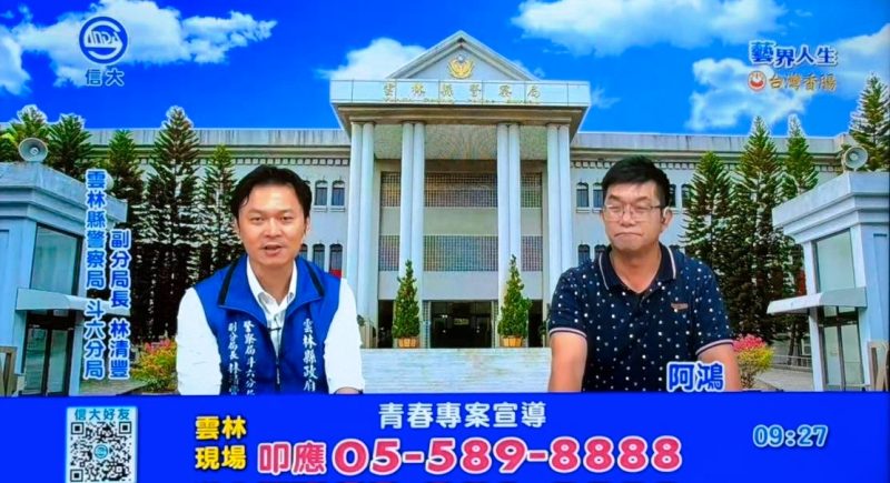 斗六分局副分局長林清豐於今(1)日親上轄區信大電視台受訪,宣導青春專案四大主軸,呼籲青少年遠離毒品及防制詐騙,期望可以確保暑假期間優質、平安、健康的治安環境。