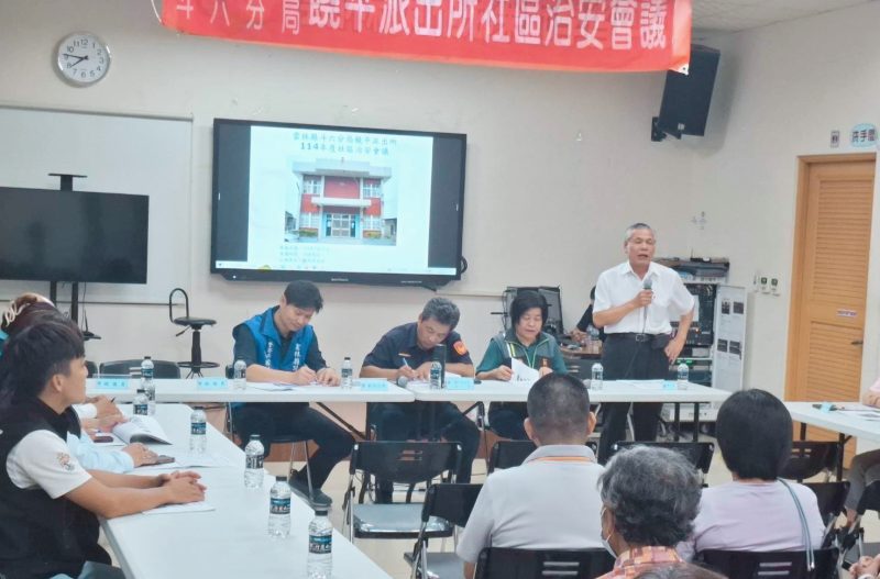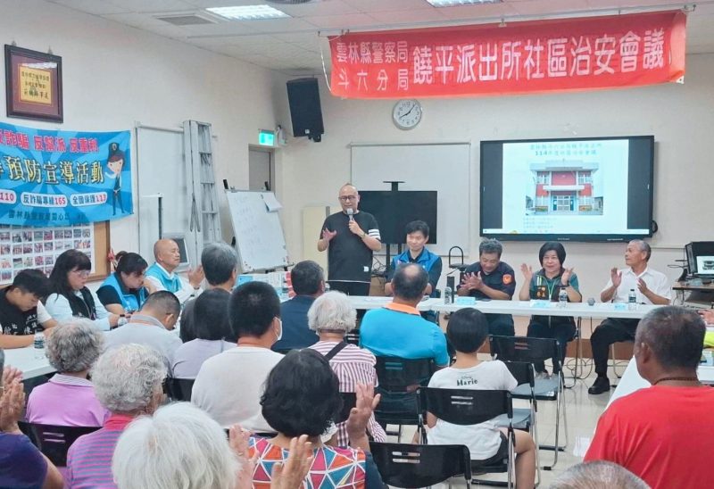 雲林縣警察局斗六分局饒平派出所於日前舉辦114年度社區治安座談會,由所長許坤雄主持。現場邀請莿桐鄉鄉長廖秋蓉、縣議員王又民、雲林縣工業會理事長林萬宗、莿桐鄉樂齡學習中心執行長關淑華、多位縣議員秘書與助理,以及興貴、饒平、六合等村長與村民共襄盛舉,另有興南社區巡守隊隊長張金安帶領隊員參與,場面熱絡。