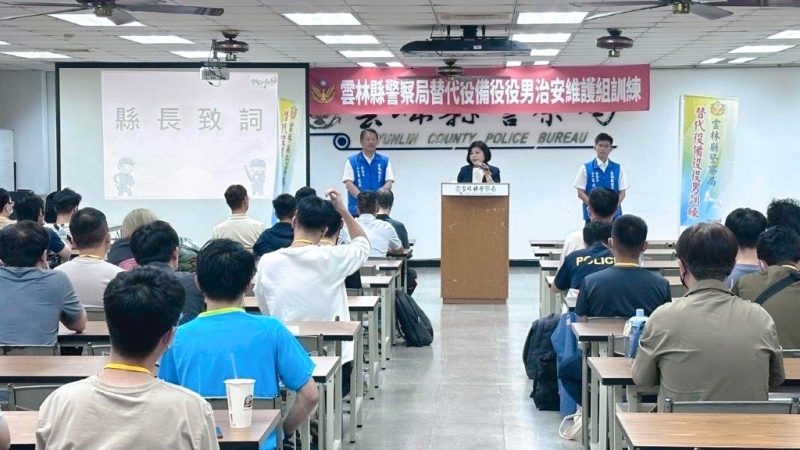 雲林縣警察局於7月28日至30日辦理「114年度替代役備役役男治安維護組第一梯次演訓召集」,並由縣長張麗善親自主持開訓典禮,本次召訓對象為設籍本縣且退役8年內編列為治安維護組之替代役備役役男計100員,依役男組別特性編排民防暨全民防衛教育、自救與互救、避難疏散、假資訊識別(防詐、識詐)、無人機探索、協助道路交通事故處理實務與法規及治安維護組協勤實務與技能等課程,理論與實務並重。
