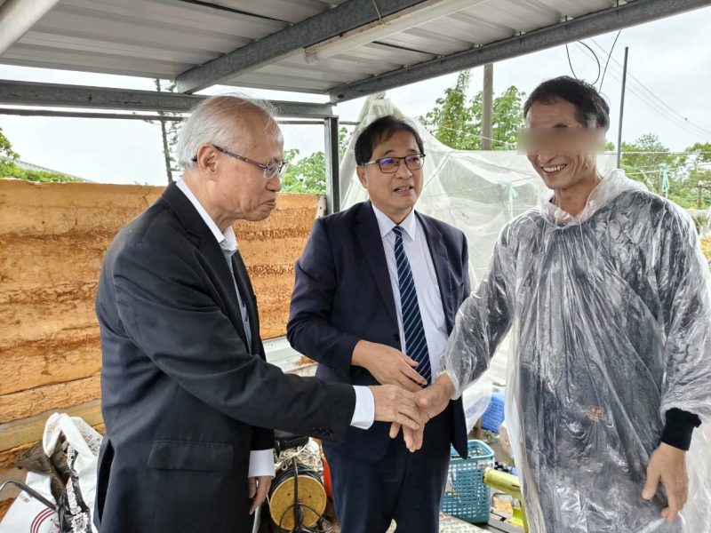 此次部長除了關心慰問外,同時媒合社會資源(財團法人台新銀行公益慈善基金會與財團法人昇恒昌基金會捐贈)提供災後慰問金新台幣5千元及災後重建金新台幣6萬元,共計新台幣6萬5千元整,希望能帶給老林在這風災後法務部的關懷,也鼓勵老林能早日重建田園再種植更優質的農產品來跟大家分享。
