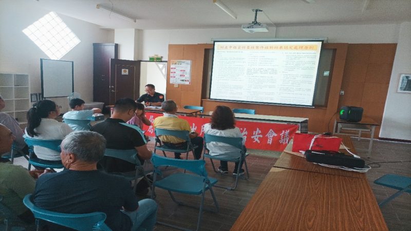 斗南分局草嶺派出所在古坑鄉草嶺社區活動中心召開社區治安座談會,邀請草嶺村村長陳兵通與會,會議由草嶺所所長沈文信主持,針對地區治安、交通、社區警政等相關議題開講,將詐騙案例、行人及年長者交通事故肇因、防治家暴跟騷法等議題以活潑多元的方式向村民宣導。