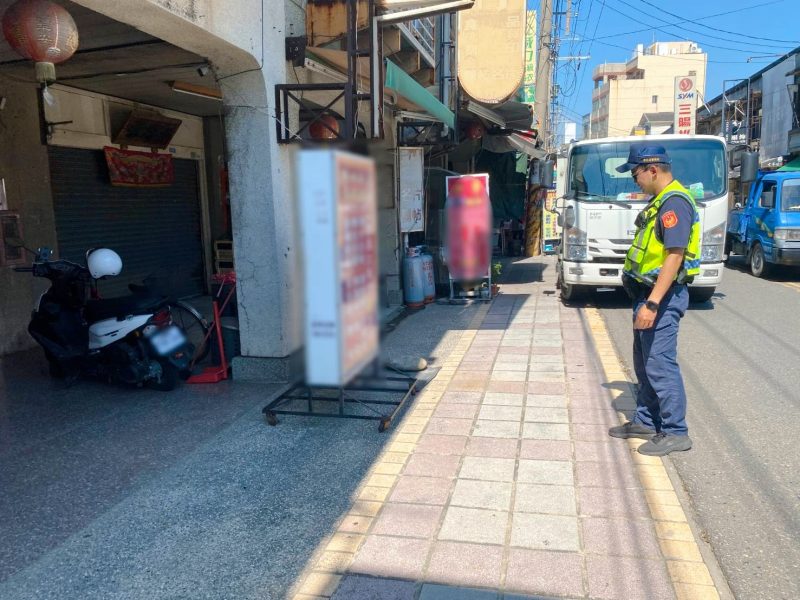 各種形式的障礙物占用車道、人行道等區域,不僅嚴重影響市容,更可能危及其他用路人的生命安全,因此虎尾分局針對道路上堆積、放置足以妨礙交通之雜物及未經許可在道路擺設攤販、設置廣告物等情形進行「清除道路障礙」專案工作。