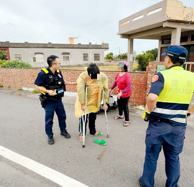 員警趨前關心後得知,吳男原本計畫在颱風來臨前,從四湖住家騎機車前往北港購物,未料途中機車故障熄火。吳男雙腳因宿疾須依賴枴杖無法久行,加上身上沒有手機,無法與家人聯繫,一人一車在風雨中等待他人救援。