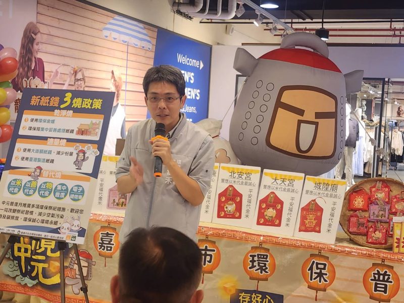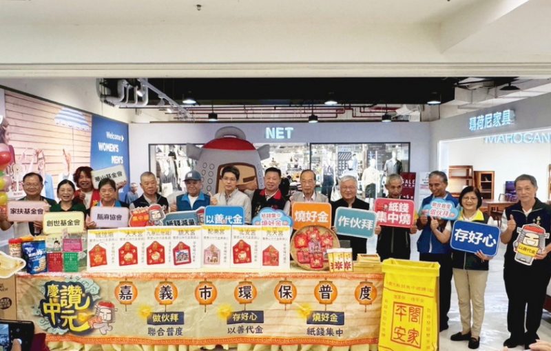 中元普度將近,嘉義市政府為兼顧傳統和環境永續,在中元期間配合環境部「新紙錢三燒」政策推廣多項環境友善祭祀措施,並鼓勵民眾參與寺廟、社區聯合普度一同團普,於今(18)日上午於家樂福嘉義店B1賣場入口處辦理2025中元普度環保月活動記者會。更舉辦「環保普度來+1,以善代金抽黃金」活動,鼓勵民眾將原本購買紙錢的費用,轉化為善心創造更多價值,呼籲民眾在款待「好兄弟」祈求順遂平安的同時,共同減少空氣污染物及碳排放,讓環境永續誠心不減。