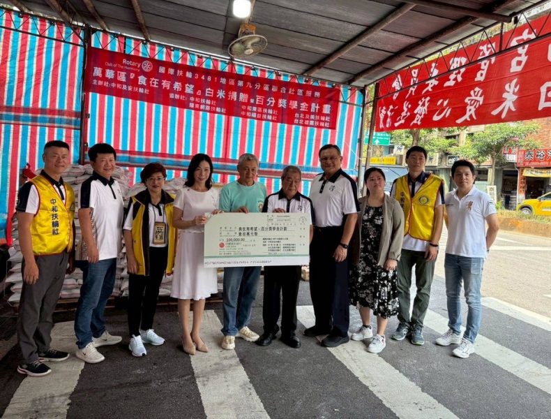 【台北訊】由「中和及安扶輪社」主辦、國際扶輪3481地區第9分區共同參與的「萬華食在有希望」白米捐贈暨百分獎學金聯合服務活動,昨(4)日在萬華雙福宮熱情舉行,現場聚集眾多民眾與社友,共同見證這場愛心公益行動。