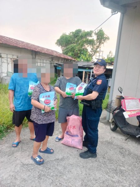 斗南分局新光派出所員警透過每日之巡邏、勤區查察等勤務,主動探視及關懷轄內單親家庭、獨居老人及低收入戶等弱勢對象,於中元節前夕與位在斗南鎮田頭里的濟天宮合作,發放白米給弱勢家庭及獨居年長者,期盼藉由此次活動拋磚引玉,讓更多社會資源投入關懷行列,傳遞社會的溫情。
