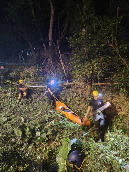 現場在山友引導下,搜救隊終於找到廖男,他疑似因摔倒受傷,無法自行行走。救難人員立刻以擔架協助搬運,歷經一個多小時,才順利將他運下山,由救護車送往恩主公醫院接受檢查治療。