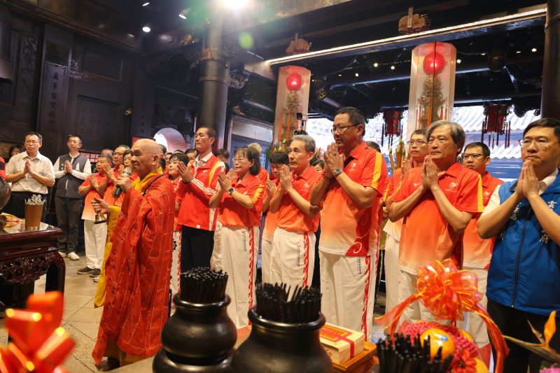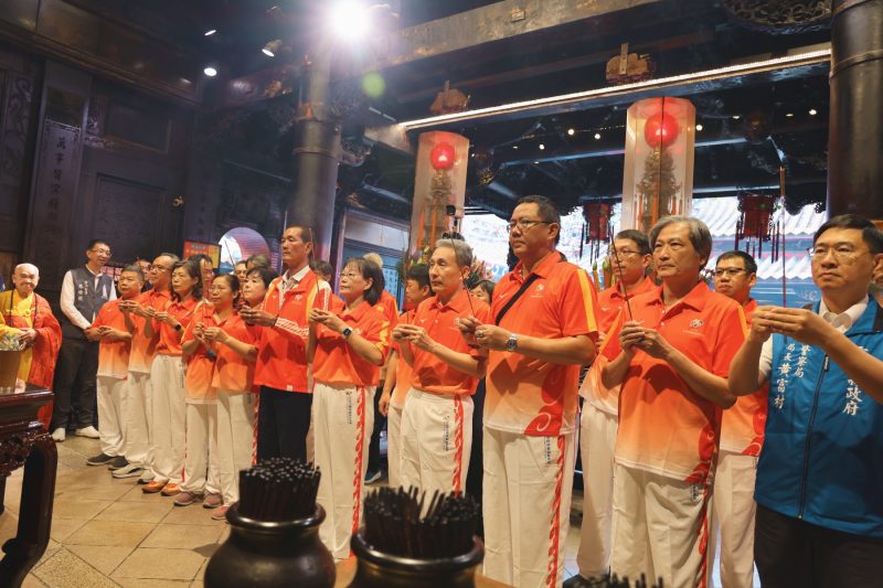 114年全國運動會9月26日上午於香火鼎盛、信仰悠久、信徒眾多的北港朝天宮舉行「聖火取母火典禮」, 副縣長謝淑亞 率領縣府團隊與114年全國運動會籌備處六部33組成員共同上香祈福。