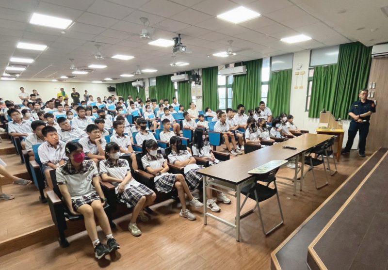 在交通安全方面,警方提醒學生日常生活務必遵守交通規則,包括耐心等候綠燈、使用行人穿越道過馬路,不隨意穿越道路。同時也宣導正確騎乘自行車觀念,如佩戴安全帽、保持警覺,以及運用手勢示意轉彎等,確保行車安全。