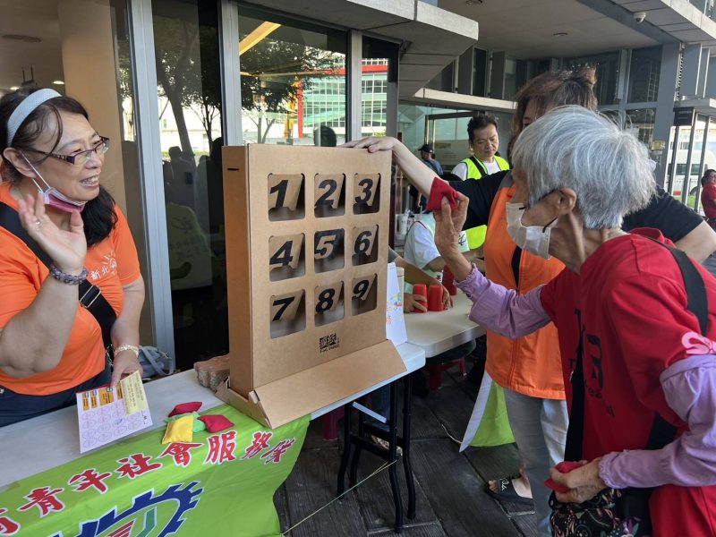 此外由救國團義工準備的親子闖關活動則有中和區團委會的推推樂、工商青年社會服務隊一隊的九宮格、金山區團委會與工商青年社會服務隊二的疊杯、五股區團委會的沙包丟丟樂,考驗大小朋友的肌耐力及力量的掌控力,工商青年社會服務隊三隊的暗棋拼字則是運用象棋讓民眾動動腦增強記憶力,新莊區團委會的積木疊疊樂、泰山區團委會的我是高手,透過使玻璃瓶站立,訓練手腦協調能力和鍛鍊手部肌群,汐止區團委會的挑戰大魔王,與關主進行撲克牌比拼,既刺激又有趣,活動現場氣氛融洽,歡笑聲及尖叫聲連連。