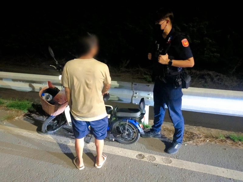 日前晚間,62歲的男子推著電動輔助自行車行走在153線縣道上,當時來往車流量大險象環生,臺西分局安南派出所巡佐蔡東晃、警員王致皓執行巡邏時發現,立即上前關心。