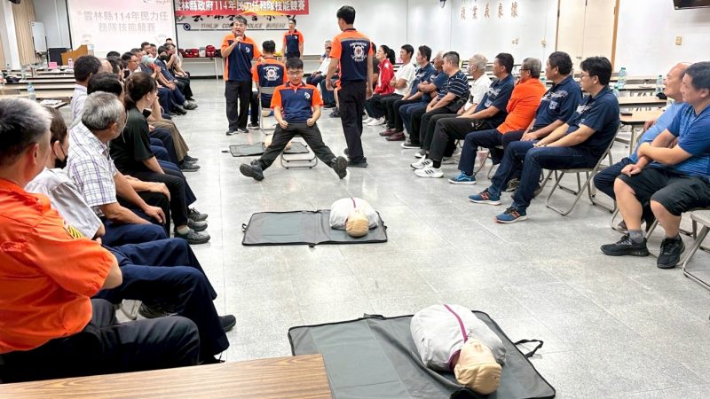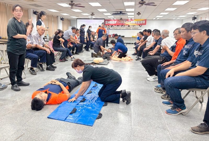 此次競賽由各分局遴選10名菁英組隊參加,項目包括「心肺復甦術(CPR)」及「止血帶包紮」兩大主題,旨在提升民防人員於緊急狀況下的應變能力。活動採「訓用合一」方式進行,並安排雲林縣消防局講師講解兩大主題技巧與應用時機,隨後即展開競賽。