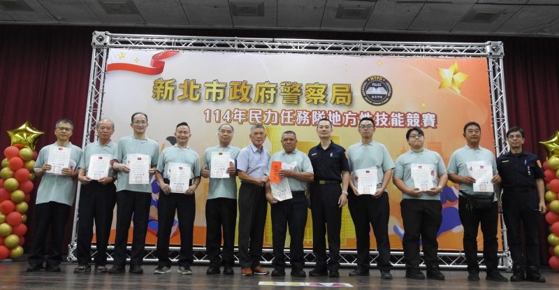 本次新北市政府警察局所舉辦「114年民力任務隊地方性技能競賽」於10月16日在中和區民安街172號中正堂隆重舉行,參與人員由警察局所屬的16個分局各遴選10名民力人員組隊所組成,而民力所屬大隊民防大隊長吳建亨、義勇警察大隊副總幹事李嘉源、交通義勇警察大隊中和中隊長張自強等貴賓亦到場參與,並鼓勵參賽人員全力以赴、爭取榮譽。