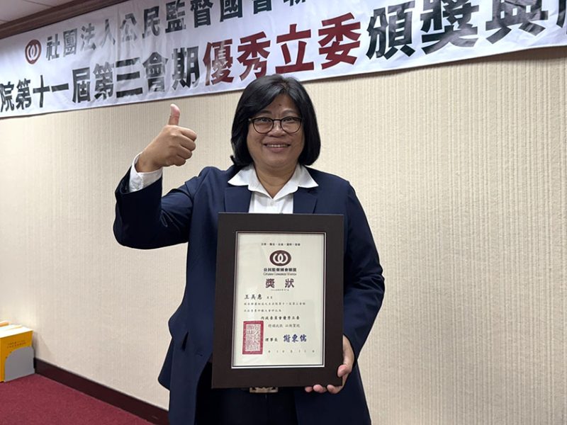 王美惠表示,感謝公督盟及各評鑑單位的肯定,問政認真是本份,但每一次的肯定,都是她最大的榮耀,也是最強的鼓勵。