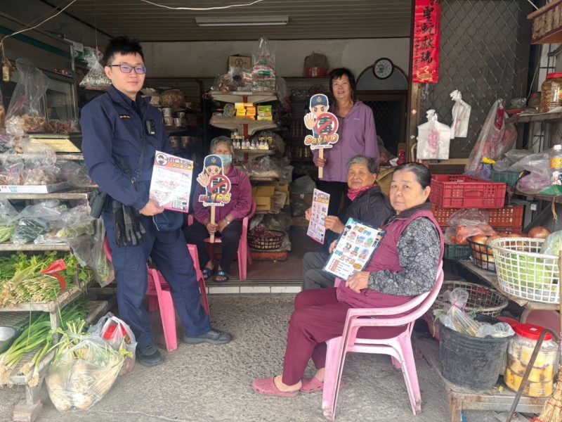 因應「全民+1政府相挺」普發現金專案上路,東和派出所警員詹弘瑋至荷苞村老人活動中心及村里各商家宣導現代詐欺手法的多樣性。