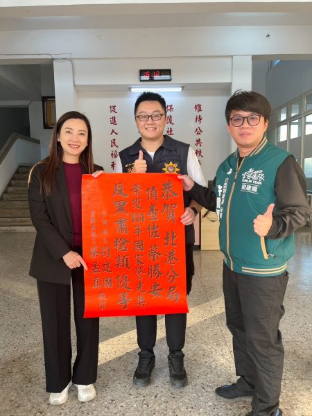 北港警分局的偵查佐蔡勝安,在此次頒獎典禮中榮獲「114年度國家警光獎甄選個人組反黑肅槍類第五名(優等)」獎項,並由中華民國警察之友總會理事葉力誠親自頒發精美獎座。為了表揚蔡偵查佐的辛勤付出,局長黃富村及縣議員蔡孟真也親自蒞臨北港警分局,為他貼紅榜,對其工作表現給予高度肯定與鼓勵。