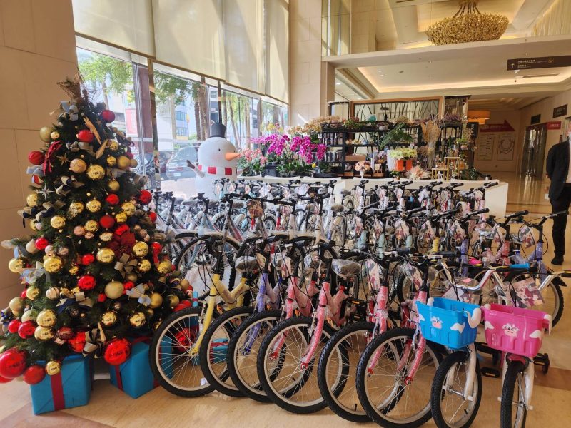 耐斯廣場總經理鄭百三致詞表示,耐斯王子飯店迄今已送出將近9,000份聖誕禮物,感謝媒體朋友的報導,今年超乎預期,訊息一曝光,不到三天的時間,心願卡就被認領一空。認領人來自台北、台中、高雄等台灣各地都有,經過三個禮拜的時間準備,大家陸續寄來包裝精美的聖誕禮物,真的讓人很感動。也特別謝謝默默付出的吳郭漁先生總是一次認領所有的腳踏車,另外奮起福企業、湯姆熊歡樂世界、金興玩具等業者,還有不少不願意曝光的善心人士,大家有錢出錢、有力出力,讓這場活動能夠圓滿成功。