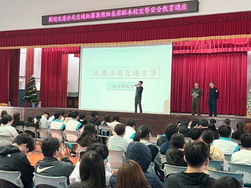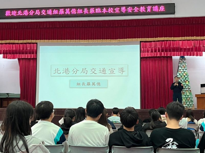 北港高中校園為應對當前社會日益嚴峻的詐騙案件與交通安全問題,北港警分局第五組組長羅萬億於近日受邀前往北港高中,向全校師生進行防詐騙與交通安全宣講。