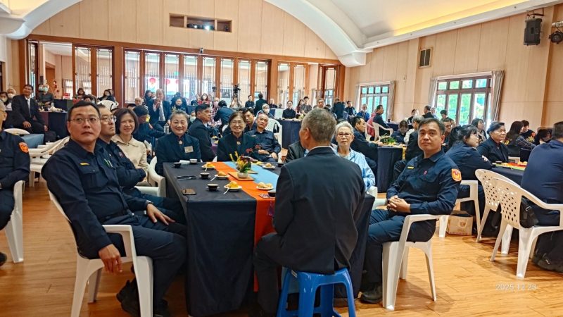 分局長在致詞中也感謝每位慈濟師兄姐長期堅守於偏鄉宣導,致力於茹素與環保事業,並特別感謝烹製豐盛蔬食的香積師中姊們的無私付出。他呼籲大家能夠參與蔬食共善的行動,一同愛護地球,為改善日益惡化的環境貢獻力量。活動最後,大家合影留念,並一同享用豐盛的餐敘,感受這份來自社會各界的溫暖祝福。在大家的歡笑聲中,這場歲末感恩聯誼活動圓滿落幕,不僅加深了警察與眷屬之間的情誼,也讓大家在繁忙的生活中感受到慈濟的愛與關懷。