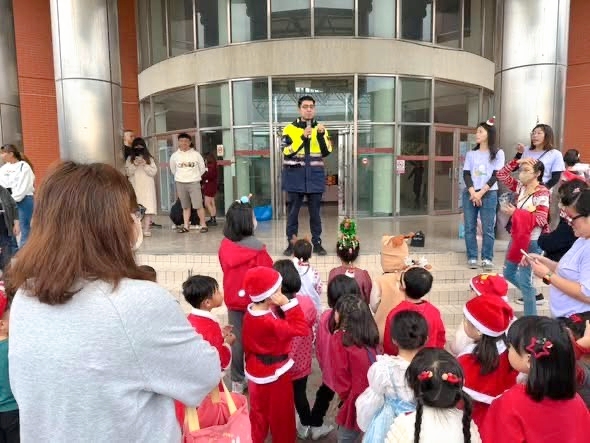 臺西分局提醒參加聖誕踩街活動的幼童及父母,行經路口時要走行穿線,且要舉手過馬路才能增加能見度,小朋友們外出時應由大人陪同,注意自身安全。最後,報佳音隊伍來到臺西分局,由小天使們表演可愛舞蹈,組長黃進德、臺西派出所所長吳宇謙進行交通安全及識詐宣導,呼籲大家重視交通安全及防詐與識詐。