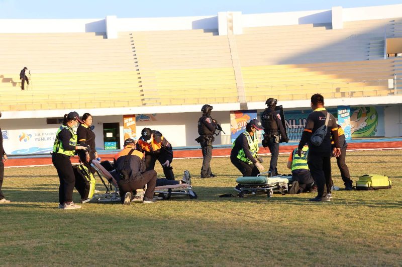 為因應即將到來的跨年觀光人潮,雲林縣長張麗善今(29)日下午率各局處於雲林縣立田徑場進行實兵演練,演練過程模擬突發情境,展現跨局處協作默契。張縣長表示,縣府已做好萬全準備,會以最嚴謹的態度,確保活動順利,全力保護參與民眾安心參加、歡欣跨年、平安回家。