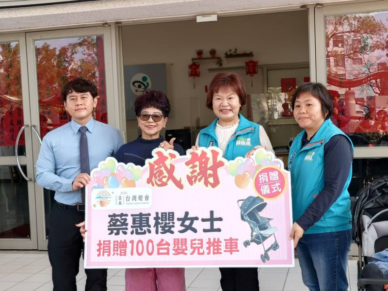 嘉義縣社會局於今(5)日上午舉行「2026台灣燈會輪椅及嬰兒推車聯合捐贈儀式」,社團法人中華高滲透水冷光照護協會媒合財團法人辜公亮文教基金會及方亮股份有限公司捐贈50台輪椅,仁義湖岸大酒店董事長蔡惠櫻同時捐贈100台嬰兒推車,提供燈會期間身障者、行動不便長輩及育兒家庭更方便、安心的友善環境。