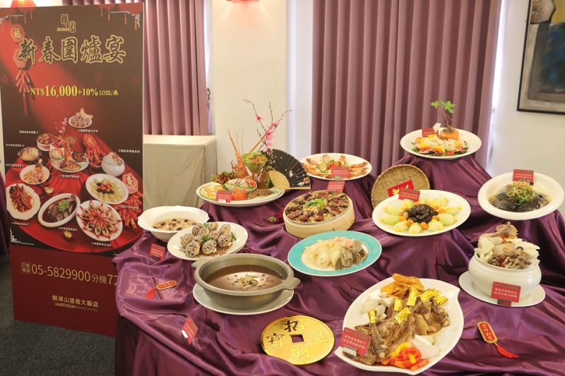 劍湖山世界總經理 曾慶欑表示:除夕夜是國人最重視的團圓時刻,「飯店圍爐」除了享用星級開運年菜外,還兼俱便利性與氣派感,讓闔家大啖美饌,同時暢享天倫之樂。今年由主廚團隊嚴選上乘食材,打造「海陸豐饌圍爐宴」,包括象徵年年有餘的「甘露蔥油龍虎斑」、鮮味迸發「金銀蒜蒸海大蝦」;絲滑Q彈、鮮香滑順的「上湯一品海皇羹」;象徵步步高升「鰻魚櫻蝦珍珠糕」、金湯清甜、膠質醇厚的「蟲草花燉花膠雞」,以及口感軟嫩多汁、霸氣十足的「杏菇黑椒戰斧豬」等十二道珍味美饌,每桌$16,000+10%。