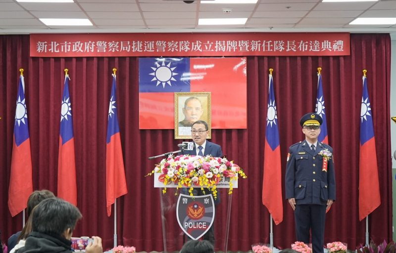 新北市政府為強化捷運系統治安維護與公共運輸安全,於今(115)年1月1日成立「新北市政府警察局捷運警察隊」,並於昨(13)日正式舉行成立揭牌暨新任隊長布達典禮,由市長侯友宜親自主持,並邀請立法委員羅明才、新北市議會蔣根煌議長、陳鴻源副議長、所有市議員、警察局局長方仰寧、新店區區長、轄區里長以及各界貴賓到場觀禮,共同見證這重要時刻,並期勉新任隊長廖國安戮力以赴做好各項捷運治安維護工作。