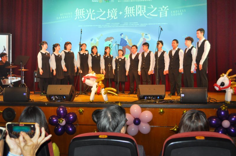 圖三:臺北市立啟明學校合唱團演唱《我的未來不是夢》,歌聲整齊而堅定;台下觀眾紛紛跟著打節拍,以掌聲與節奏回應舞台上的信念。