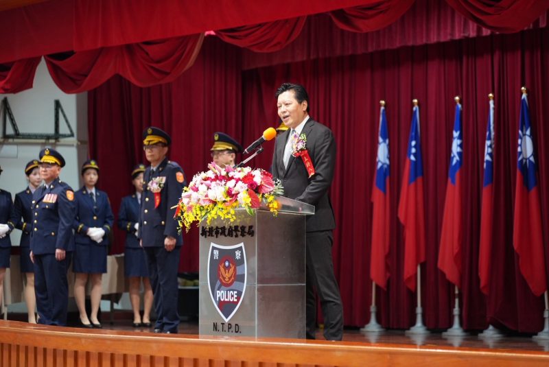 朱副市長同時也期勉各位新任的分局長、大隊長在領導上「要有為有守」,成為警察同仁堅實的後盾,持續以專業與同理心服務市民,秉持「專業、紀律、團隊」的治安理念,全心全力守護市民安全,攜手打造安全宜居的「新北幸福城市」,同時也感謝各界賢達長期以來對警政工作的支持與挹注,為警察同仁加油打氣。