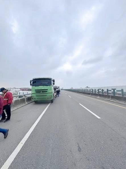 日前8時許,臺西分局橋頭派出所接獲民眾撥打110報案表示,在快速道路61線往北215公里處路旁有載有鋼圈曳引車拋錨,請求警方協助,警員潘慶翰、林意紋獲報立即前往。