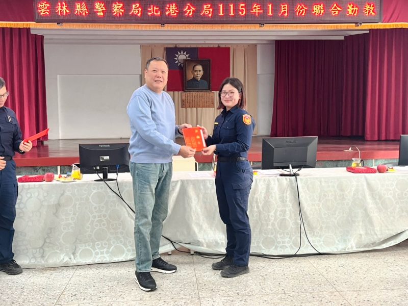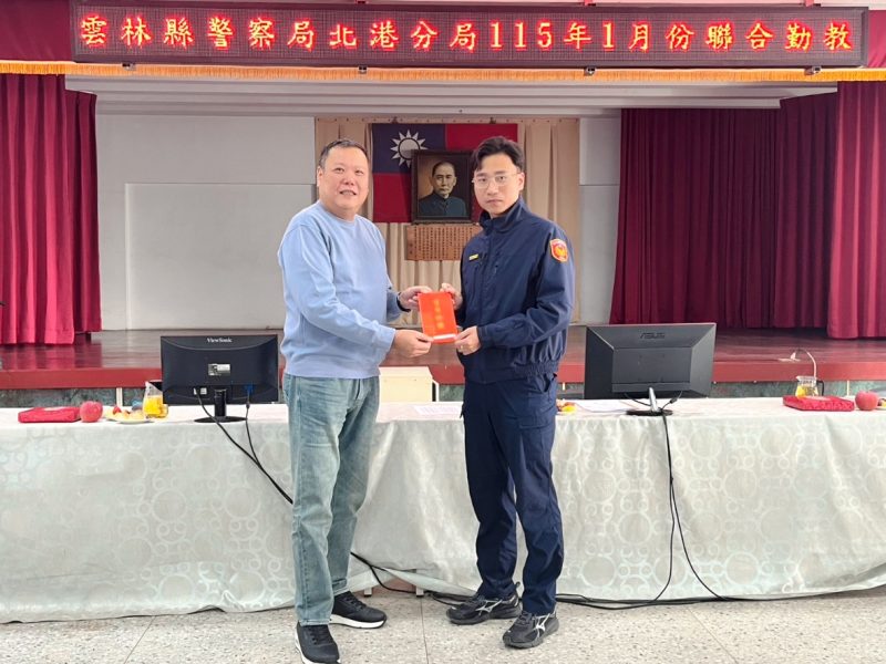 雲林縣警察之友會北港警友辦事處積極支持員警查緝毒品與毒駕行動工作表現,特於昨(21)日由主任謝政峯親臨分局聯合勤教會議頒獎,對第一線查緝人員表示嘉勉之意。