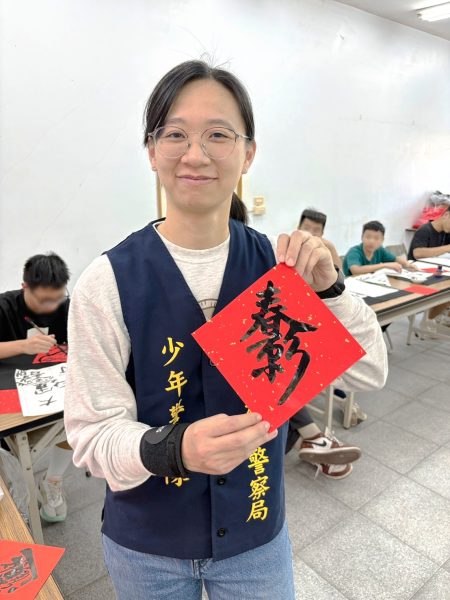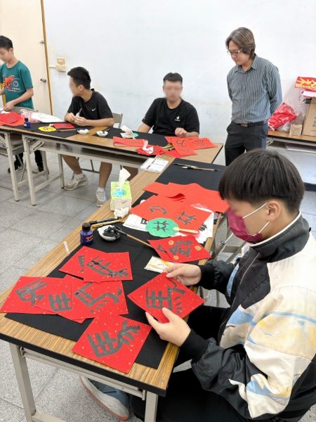 此次新春揮毫活動邀請轄內雲彩少年安親學園及過渡性教育措施之少年共同參與,在書法老師的指導下,學習毛筆的執筆和運筆技巧,並教導楷書、行書、篆書、象形等不同字體的馬字書寫方式。過程中,少年們專注投入,逐步體會書法線條與結構之美,有些學生更是靈感大發,結合新春意象,自行發揮創意完成獨具風格的春聯作品,展現自信與成就感。除了傳統書法之外,活動亦安排彩繪創作,讓少年們運用壓克力顏料,為春聯增添色彩,更加具有趣味及創意。