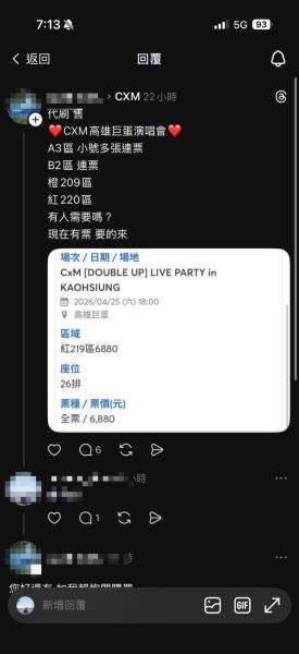 熱門韓團「CXM」演唱會門票一票難求,竟成為詐騙集團誘捕歌迷的陷阱。中西區1名35歲許男於昨(1)日16時許,在社群平臺「Threads」發現有人轉售門票,隨即與對方取得聯繫。不料這竟是一場精心設計的騙局,所幸許男在最後關頭驚覺異狀並向警方求助,成功保住新臺幣17萬元。