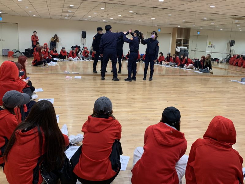 新北警婦幼隊表示,職棒啦啦隊成員因工作性質具高曝光度,與粉絲互動頻繁,較易成為性騷擾或跟蹤騷擾的高風險族群,因此建立正確的法律認知與自我保護觀念格外重要。本次宣講以實際情境案例,聚焦於辨識性騷擾及跟蹤騷擾行為之徵兆,強調「不隱忍、不姑息、即時求助」的觀念,不要成為沈默的羔羊,要勇於捍衛自身權益。